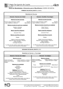 Oferta de Modalidades e Itinerarios para el Bachillerato (CURSO