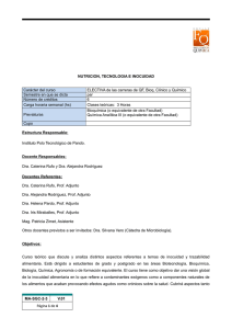 NUTRICION, TECNOLOGIA E INOCUIDAD Carácter del curso