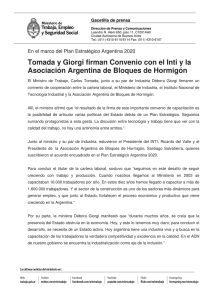 Tomada y Giorgi firman Convenio con el Inti y la Asociación