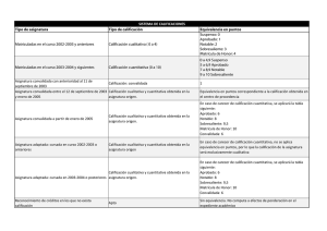 Tipo de asignatura Tipo de calificación Equivalencia en puntos