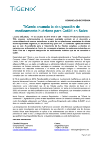 TiGenix anuncia la designación de medicamento huérfano para