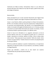 Testimonio de Pablo de Mora, farmacéutico titular en una oficina de