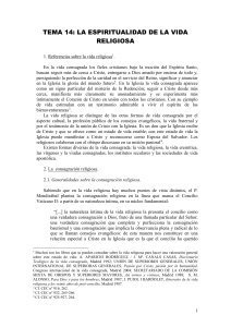TEMA 14: LA ESPIRITUALIDAD DE LA VIDA RELIGIOSA