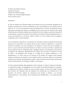Pontificia Universidad Javeriana Facultad de Filosofía Historia de la