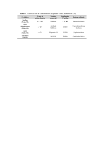 Tabla 1. Clasificación de carbohidratos aceptados como prebióticos
