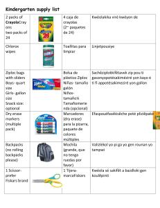 Kindergarten supply list