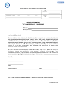 PARENT NOTIFICATION PHYSICAL RESTRAINT PROCEDURES