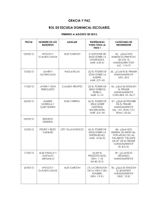 GRACIA Y PAZ. ROL DE ESCUELA DOMINICAL ESCOLARES
