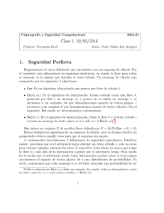 Clase 1: 02/03/2016 1. Seguridad Perfecta