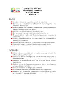 Ciclo Escolar 2014-2015 APRENDIZAJES ESPERADOS CUARTO