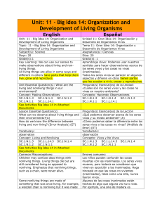 Unit: 10 - Big Idea 14: Organization and Development of Living