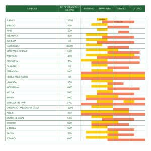 especies ajenjo n° de granos / gramo invierno eneldo anis albahaca
