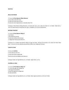 RECETAS BELLA DE NOCHE 1 ½ onza de Ron Botran Añejo