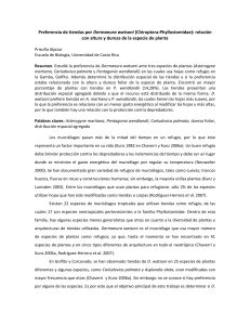 Preferencia de tiendas por Dermanura watsoni (Chiroptera