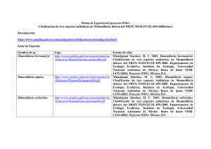 Fichas de Especies del proyecto W031 Clasificación de tres