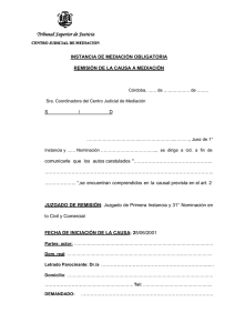Instancia de Mediación Obligatoria / Remisión de la Causa a