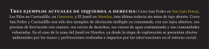 Tres ejemplos actuales de izquierda a derecha: Cerro San Pedro en