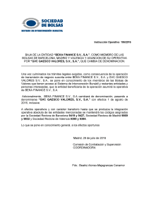baja de la entidad “beka finance sv, sa”, como miembro