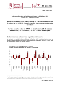 Índices de entradas de pedidos en la industria. Datos provisionales