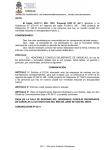 VISTO: El proyecto presentado por los Concejales del Frente Para