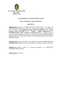 LA HONORABLE CAMARA DE DIPUTADOS DE LA PROVINCIA DE