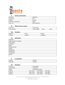 I. Datos personales II. Referencias cuerpo III. Medidas IV. Aptitudes
