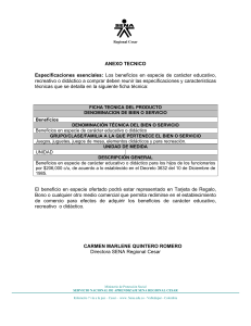 ANEXO TECNICO Especificaciones esenciales: Los beneficios en