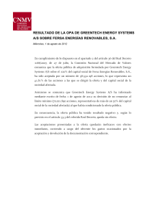 RESULTADO DE LA OPA DE GREENTECH ENERGY