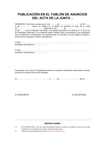 Publicación en el tablón de anuncios del Acta de Junta
