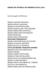 ORDEN DE ENTREGA DE PREMIOS GOYA 2016 Inicio de gala 22