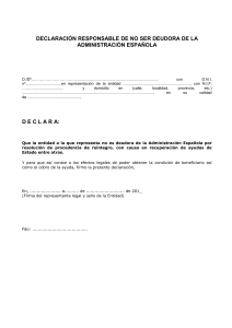 c) Declaración responsable de no ser deudora de la administración