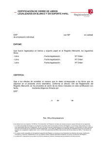 Certificado de cierre de libros en blanco. Empresarios