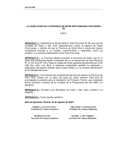 L E Y : ARTICULO 1°.- Incorpórase la denominada Ex Ruta