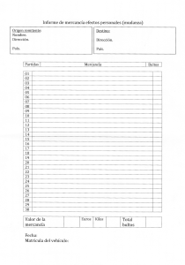 Informe de mercancia efectos personales (mudanza) Valor de la