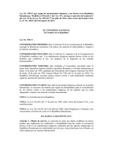 Ley o. 198-11 que regula los matrimonios religiosos y sus efectos
