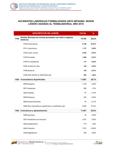 accidentes laborales formalizados ante inpsasel según lesión