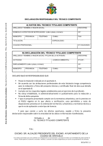a) datos del tecnico titulado competente b) declaración del técnico