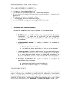 1 TEMA 4: LA COMPETENCIA PERFECTA. 4.1 Los supuestos