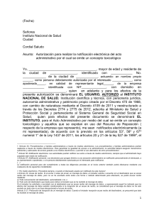 (Fecha) Señores Instituto Nacional de Salud Ciudad Cordial Saludo
