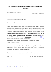 solicitud de excedencia por cuidado hijo menor de tres años