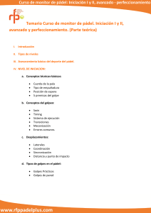Temario Curso de monitor de pádel. Iniciación I y II, avanzado y