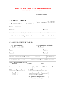comunicación de apertura de centro de trabajo o reanudación de