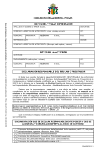 comunicación ambiental previa datos del titular o prestador datos de
