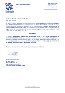 carta de certificación - Proveedores de material y suministros de