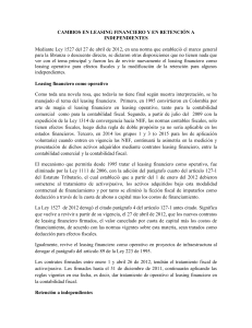 CAMBIOS EN LEASING FINANCIERO Y EN RETENCIÓN A