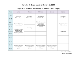 Horarios de Clases agosto-diciembre de 2015 Lugar: Aula de Medio