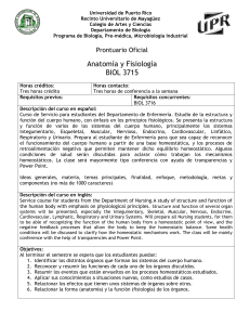 Prontuario Oficial Anatomía y Fisiología BIOL 3715 Horas créditos