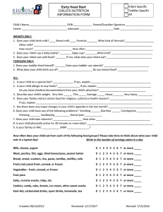 Early Head Start CHILD`S NUTRITION INFORMATION FORM Infant