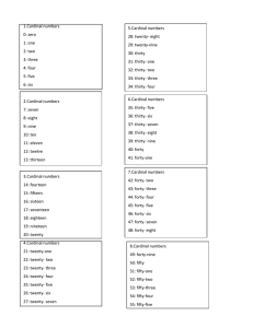 1.Cardinal numbers 0: zero 1: one 2: two 3: three 4: four 5: five 6: six