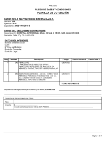 ANEXO IV PLIEGO DE BASES Y CONDICIONES PLANILLA DE